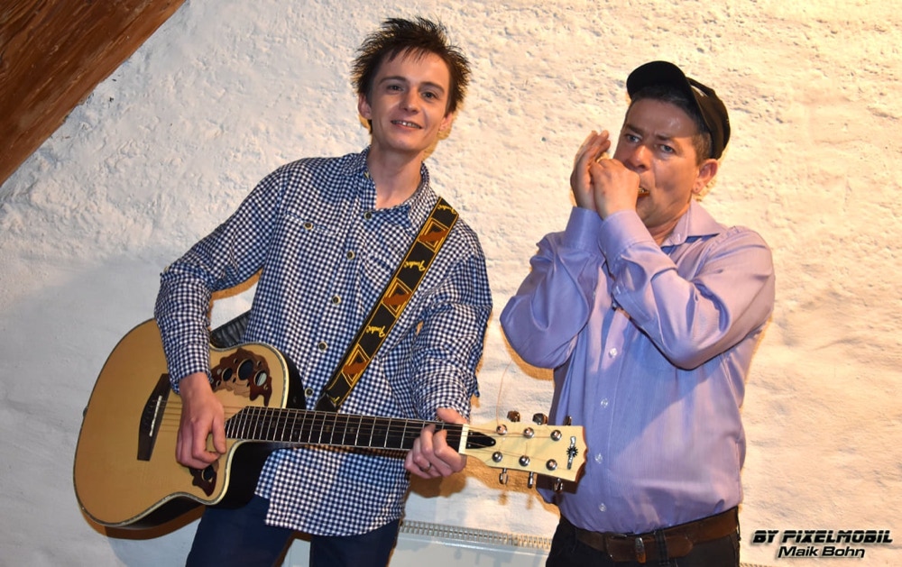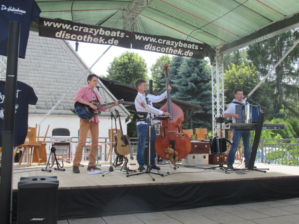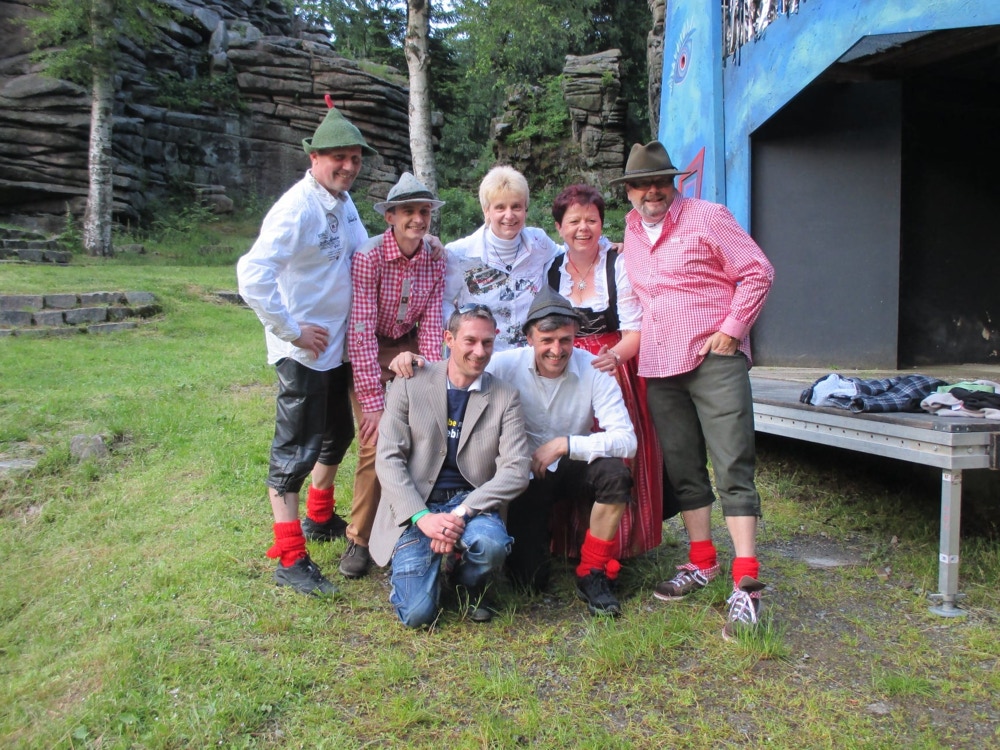 Rocco mit de Randfichten und de Haamitleit, sowie mit Radiomoderator Karsten Kolliski (Bild: Maik Bohn)